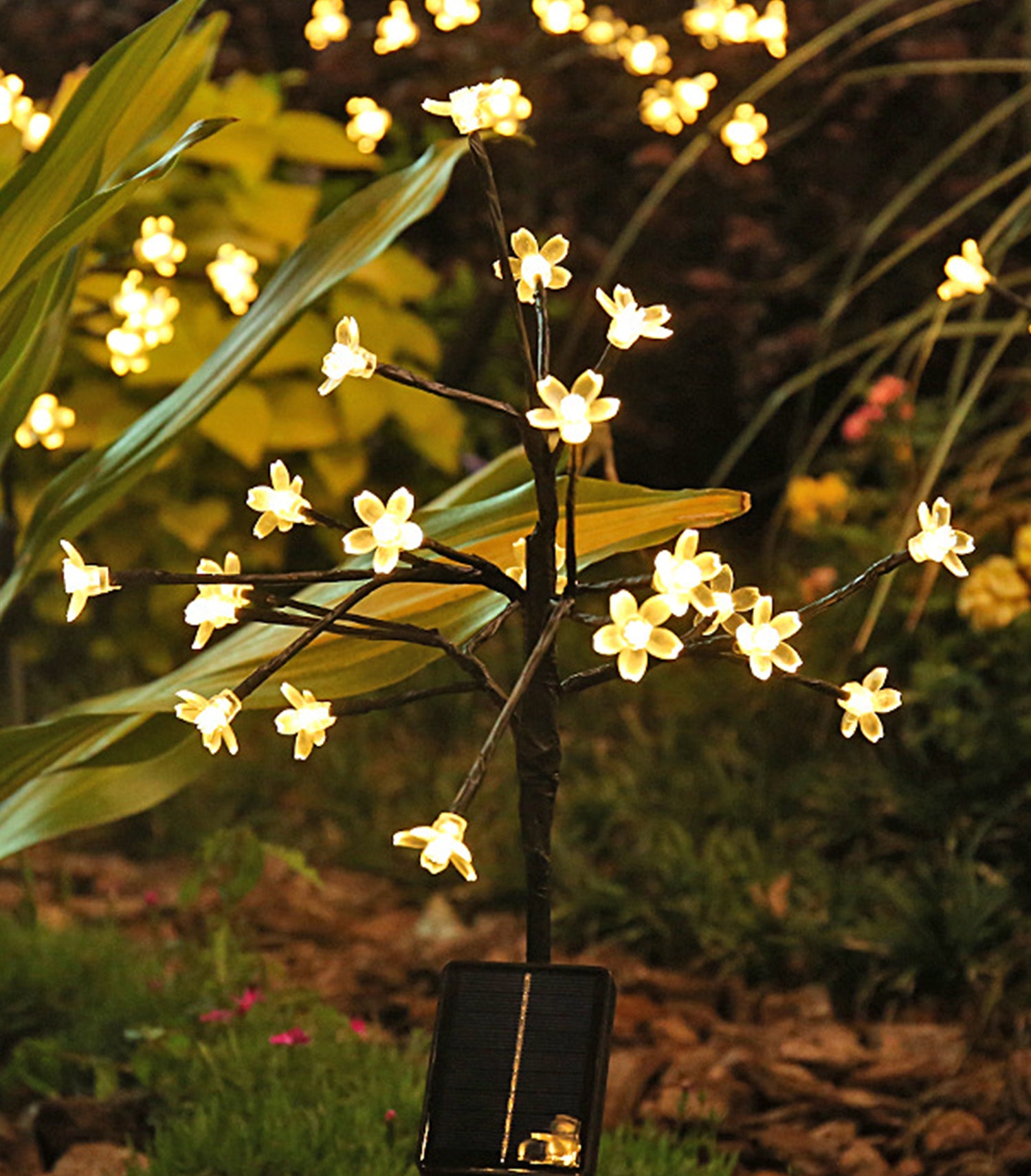 Flower stems are propped up by iron wire has super flexibility and durability, can be bent into different angles and styles, so easy to place within the plants. The colorful fairy landscape tree solar lights is an excellent supplement to the fairy tale garden.