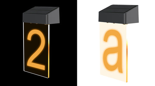 Different digital to DIY your house number. Solar number doorplate light has modern design with a stylish combination of transparent acrylic and matte numbers. Clear view under darkness, the door numbers will be activated by a built-in light sensor which stays switched on until dawn.